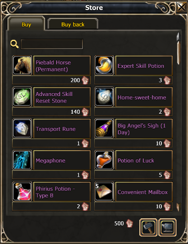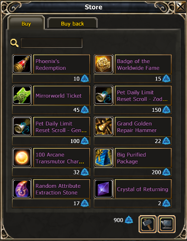 Your Spirit/Training Points appear at the bottom of the shop interface.
